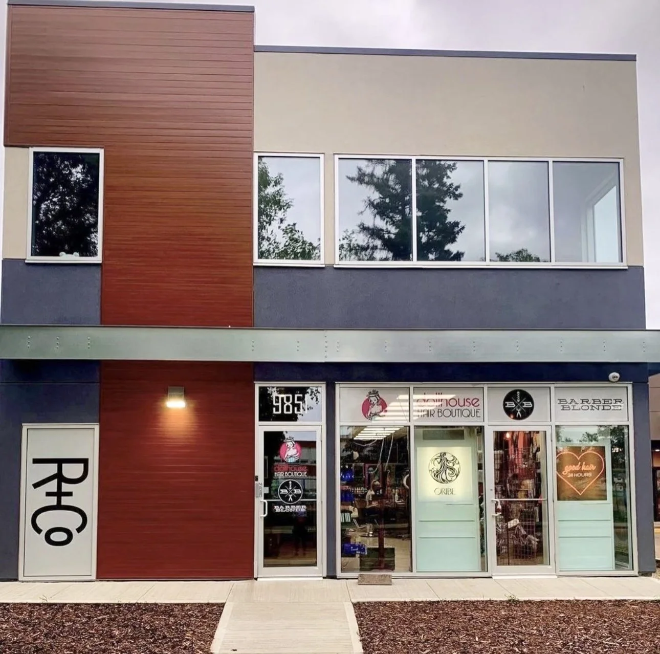 Elite Muscle is located on the second floor of Dollhouse Hair Boutique & Barber Blonde!